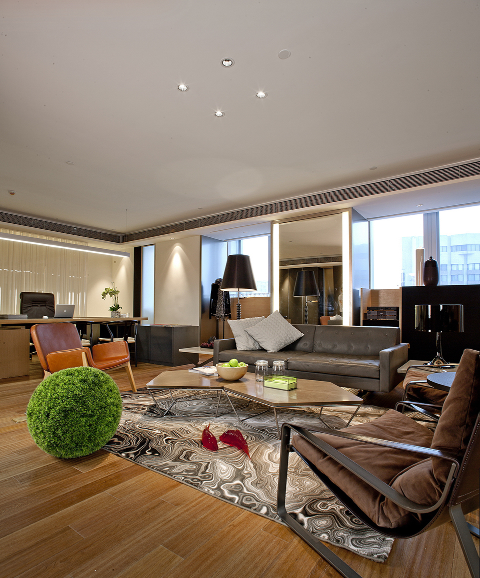 无论是下沉式设计部,开放式茶水间或者储书方式,灯光,家具,都是在构建聚落式场景,减少对着电脑呆滞的时间,能更随性的阅读书籍,调试衣物板式,选择物料,同时交流,分享设计。良性的工作环境,良性的竞赛及分享意识。