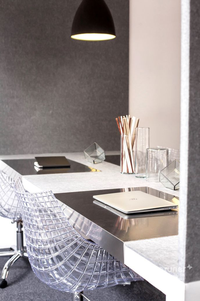 【创意理念】一个属于年轻人创业的工作环境应该具有时尚的气氛,以黑白灰的主色调,充足的阳光,极简洁的风格和活泼的氛围。